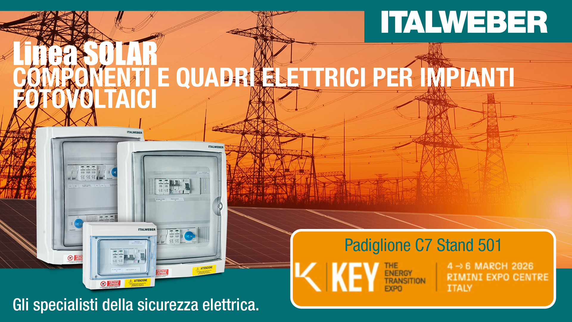 Anche nel 2026 Italweber e Italweber Elettra confermano la propria presenza a Key – The Energy Transition Expo di Rimini, appuntamento di riferimento per il settore delle energie rinnovabili e della transizione energetica. La partecipazione alla fiera rappresenta un’importante occasione per presentare le soluzioni più avanzate dedicate al mondo del fotovoltaico.